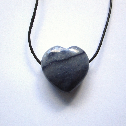 Bei diesem Artikel handelt es sich um einen Lochstein in Herzform aus Blauquarz mit den Maßen 30x30x15 mm. Im Lieferumfang weiters enthalten ist ein 42 cm langes schwarzes Ziegenlederband mit Verschluss in der Stärke 15 mm. Da es sich bei den verarbeiteten Steinen um ein Naturprodukt handelt können Farben, Form und Musterung vom Beispielbild abweichen. Verbraucherhinweis: Bitte bedenken Sie, dass alle beschriebenen Wirkungen wissenschaftlich nicht belegbar sind und daher keinen Besuch beim Arzt ersetzen.