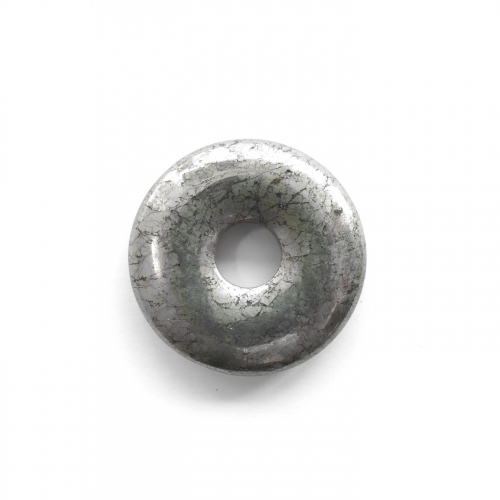 Bei diesem Artikel handelt es sich um einen Donut aus Pyrit mit 30 mm Durchmesser. Da es sich bei den verarbeiteten Steinen um ein Naturprodukt handelt können Farben, Form und Musterung vom Beispielbild abweichen.