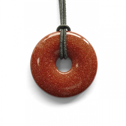 Donut (4 cm) aus Goldfluss inkl. Lederband 50 cm